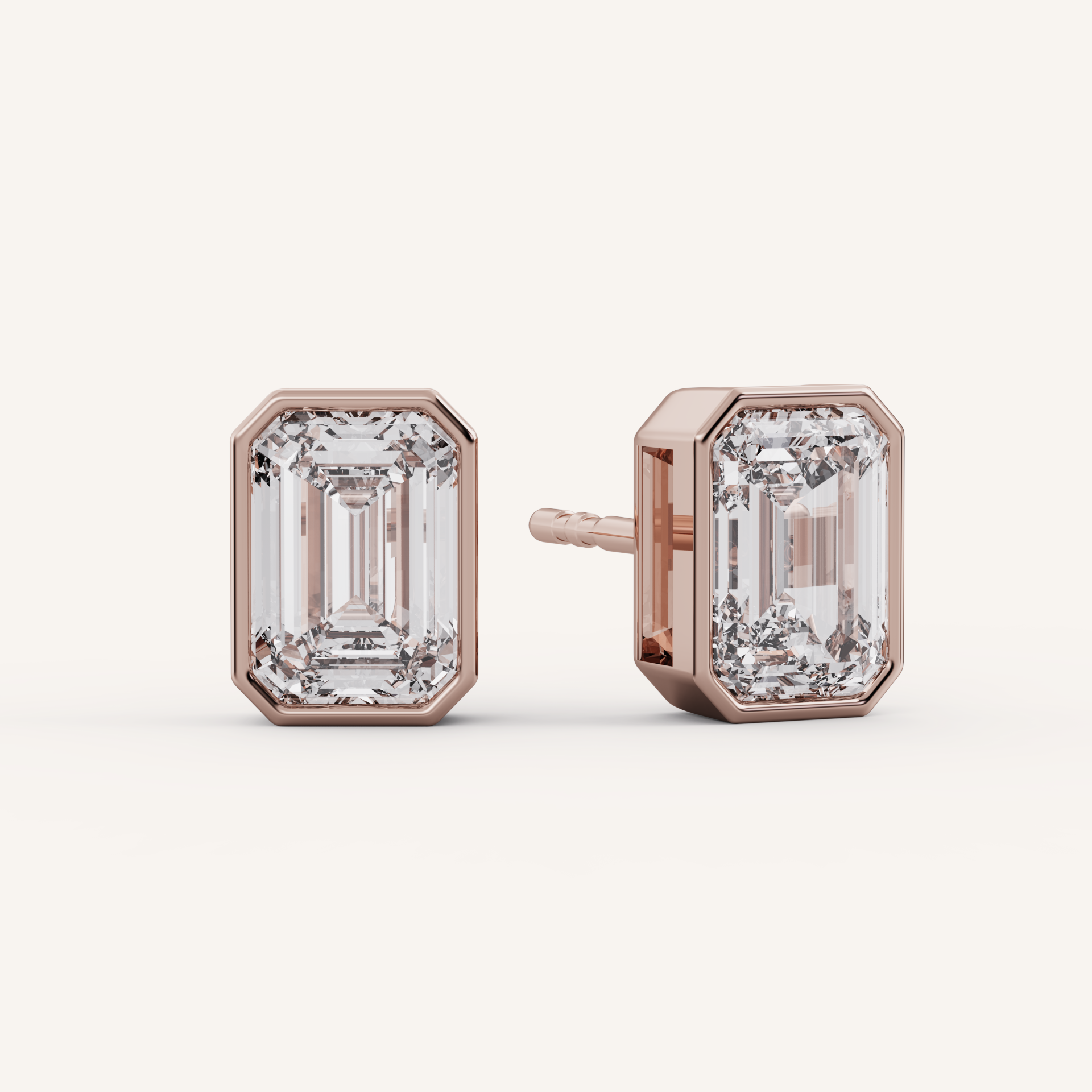Emerald Bezel Studs - 14K Rose Gold - 2.00 CTW - Lab Diamond