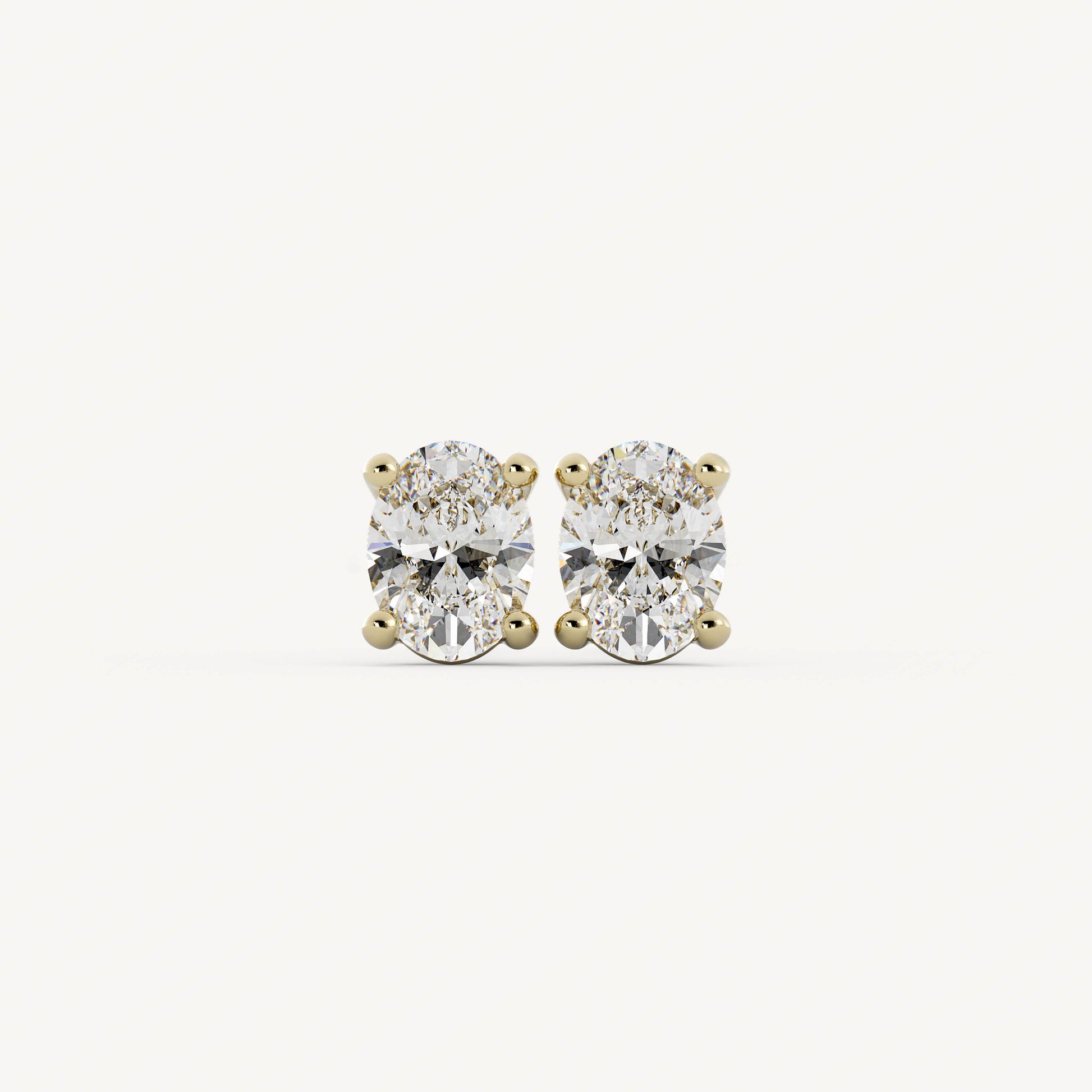 Increase quantity for Oval Studs - 14K Yellow Gold - Natural Diamond - 0.25 CTW