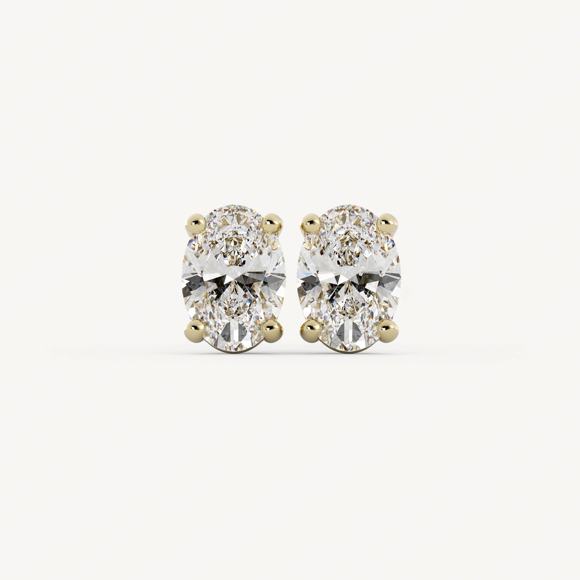 Increase quantity for Oval Studs - 14K Yellow Gold - Natural Diamond - 0.50 CTW