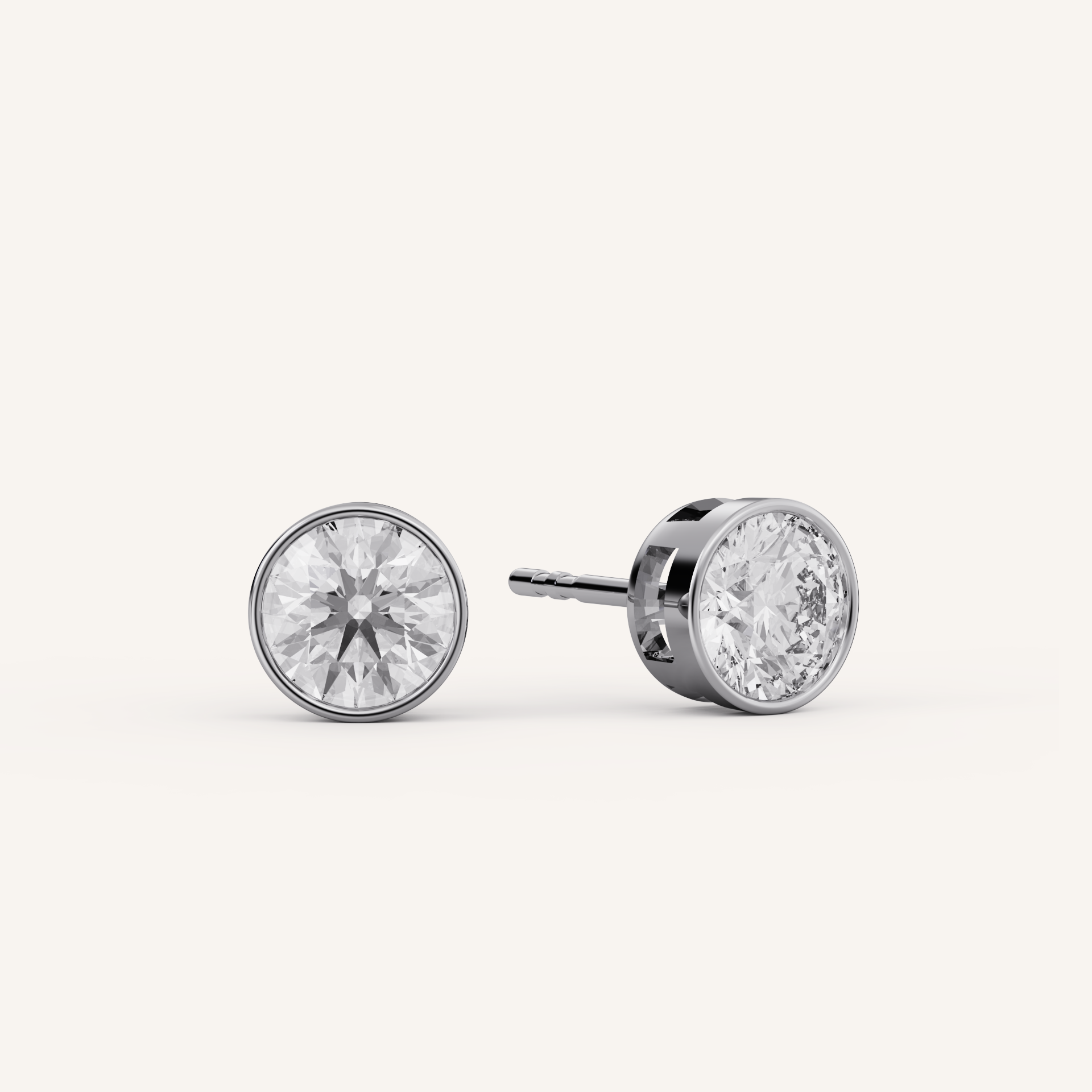 Round Bezel Studs - 14K White Gold - Lab Diamond - 1.00 CTW