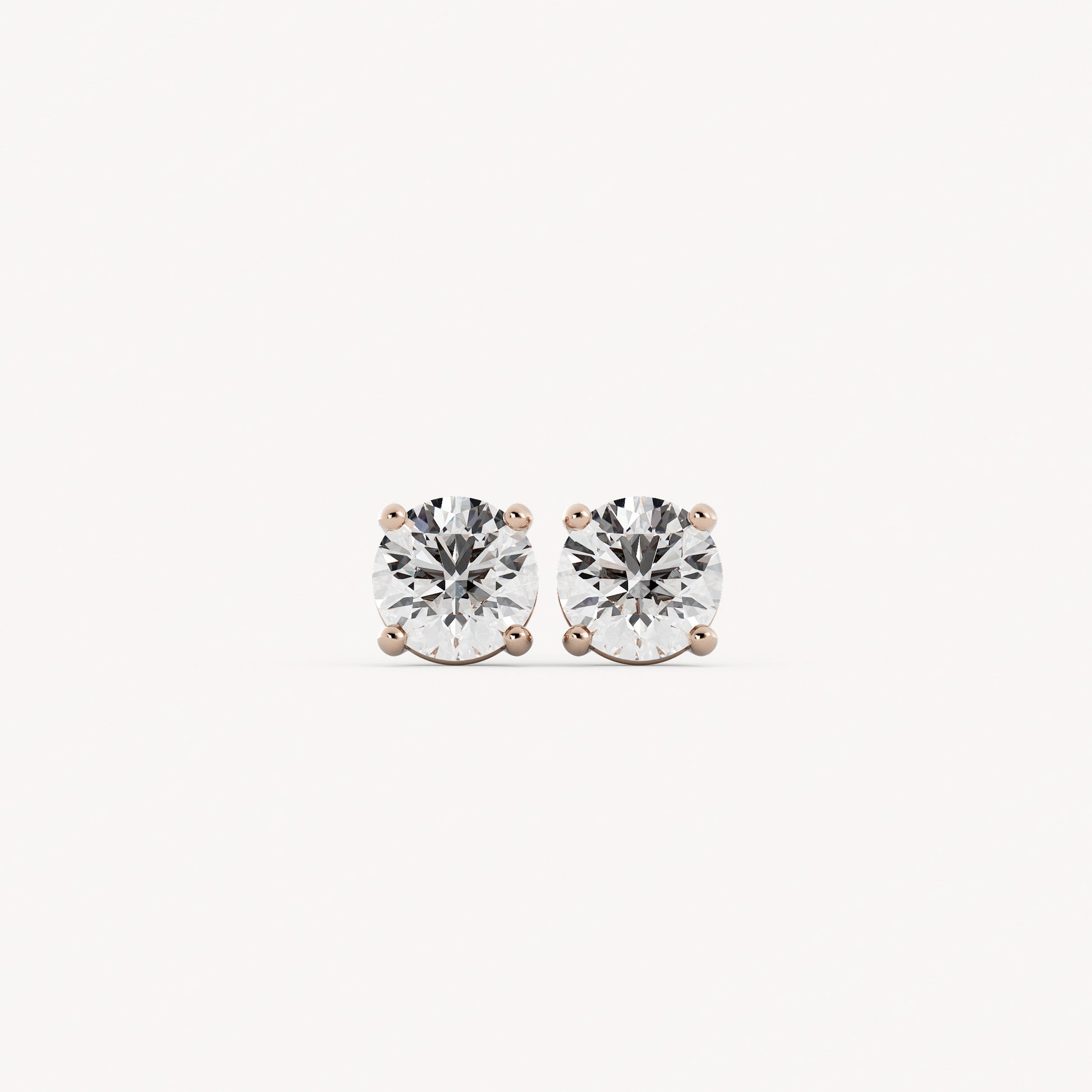 Round Studs - 14K Rose Gold - 1.50 CTW - Lab Diamond